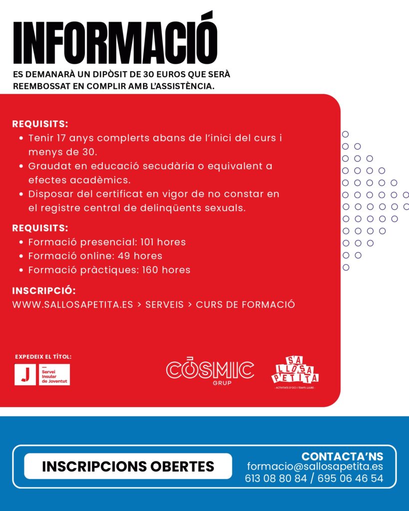 Curs oficial per ser monitor de tiemps lliure . Requisits: